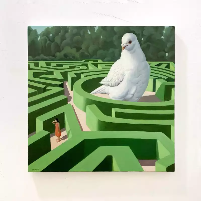 His palette leans toward muted pastels and fogged tones, but the emotional range is wide. He can move from melancholy to wonder within a single brushstroke. That’s part of his signature: the emotional shift that doesn’t announce itself but seeps in slowly.